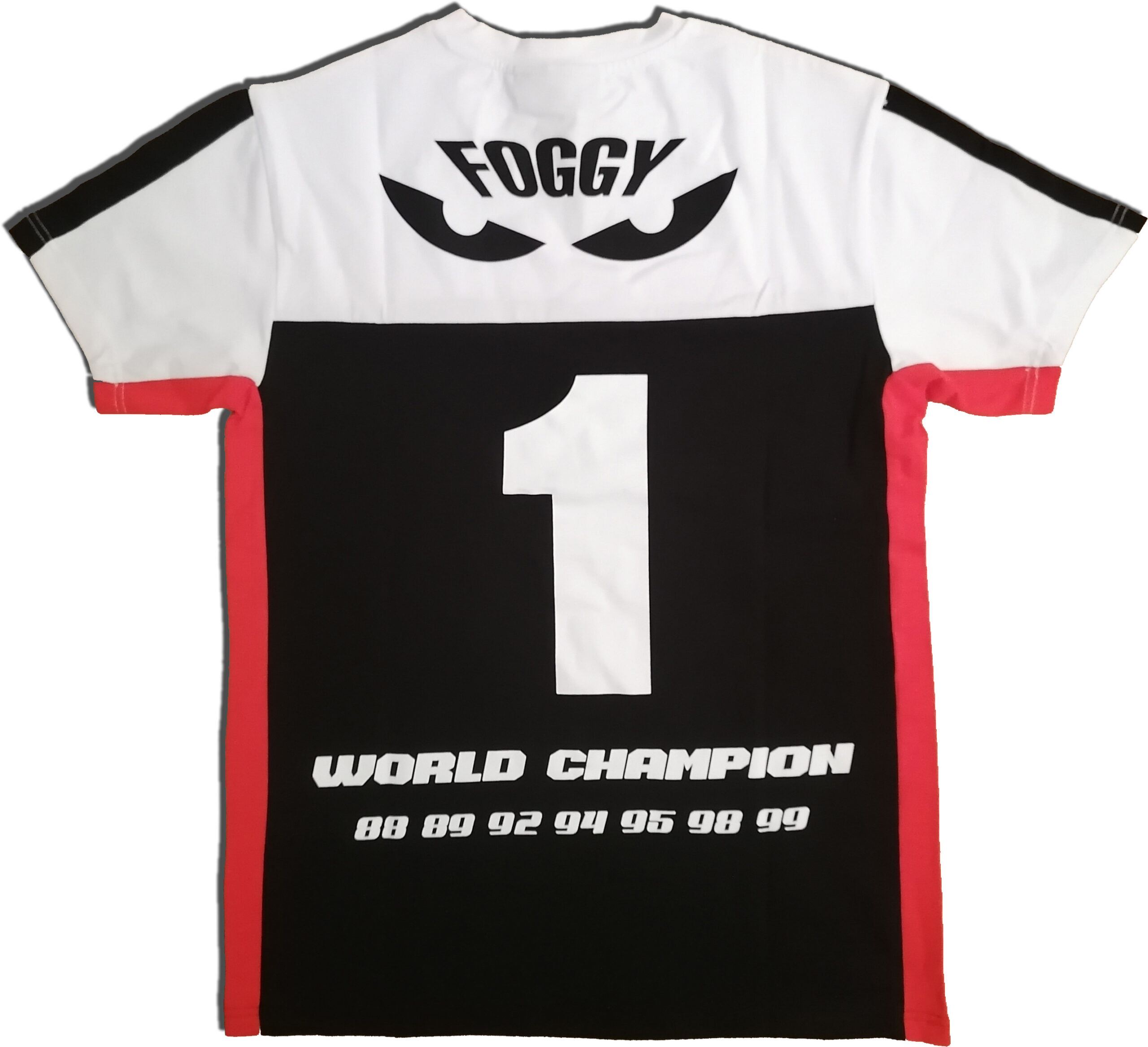 With the famous ‘eyes’ that have become part of the ‘Foggy’ brand and the years from all of his world title wins on the back, this Carl Fogarty Autographed Shirt could be framed and take pride of place on your garage wall right next to your own Ducati.