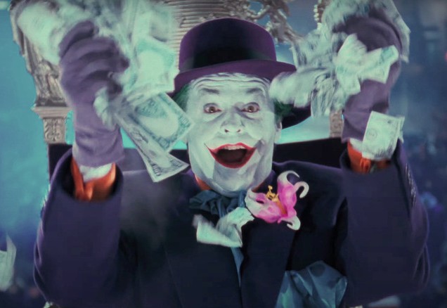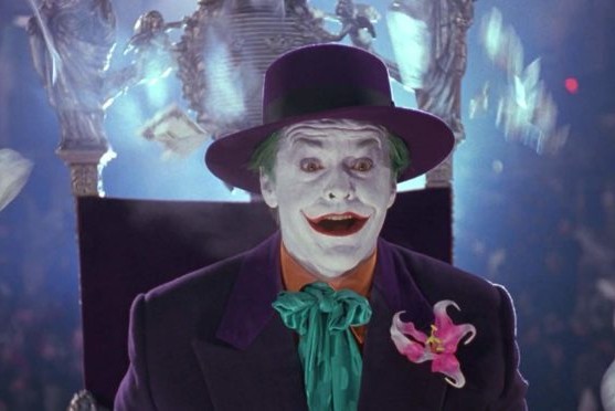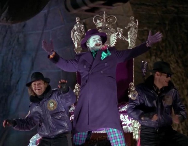 A colour movie still depicting Jack Nicholson as the Joker seated before the throne, hand-signed by Jack Nicholson and authenticated by a UACC-recognised member